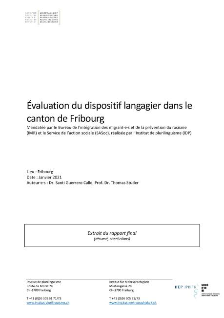 Un rapport de l'Institut de plurilinguisme, Fribourg, 2021